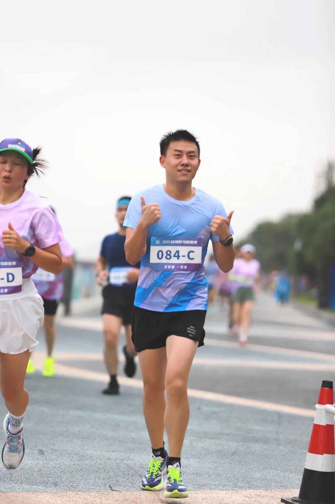 本次比賽從錢江龍廣場啟程,沿之江綠道至5.2公里處折返,最終回到起點。持續(xù)的大雨讓賽道格外濕滑,這不僅是對選手體能的考驗,更是對其意志的挑戰(zhàn)。