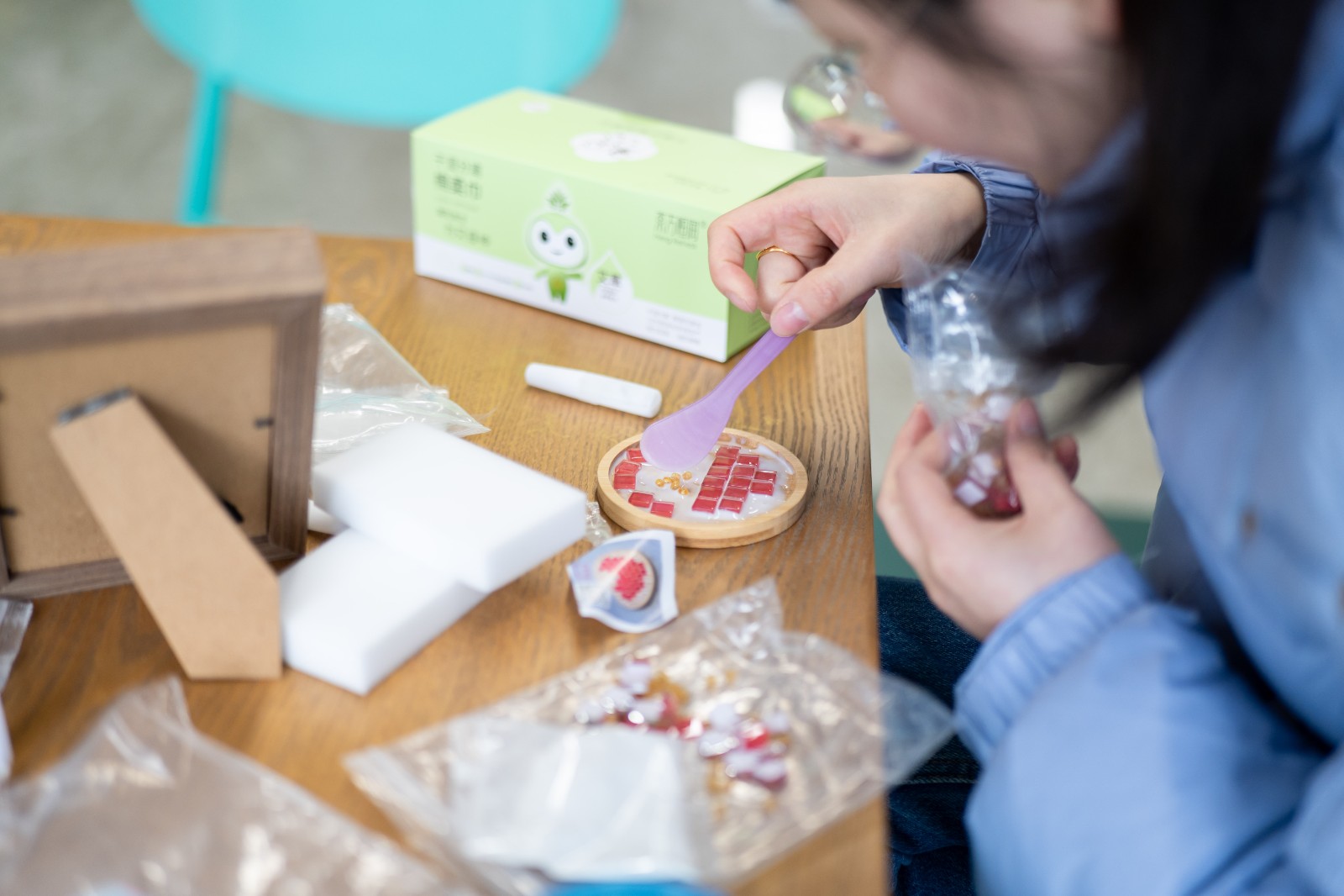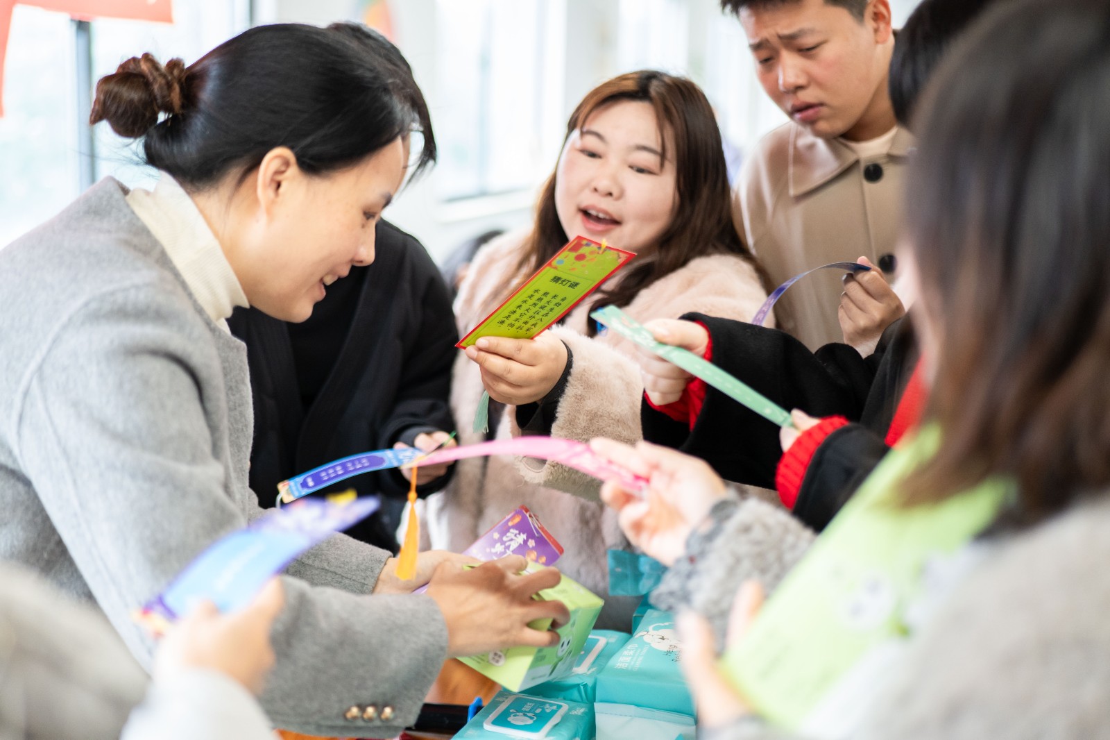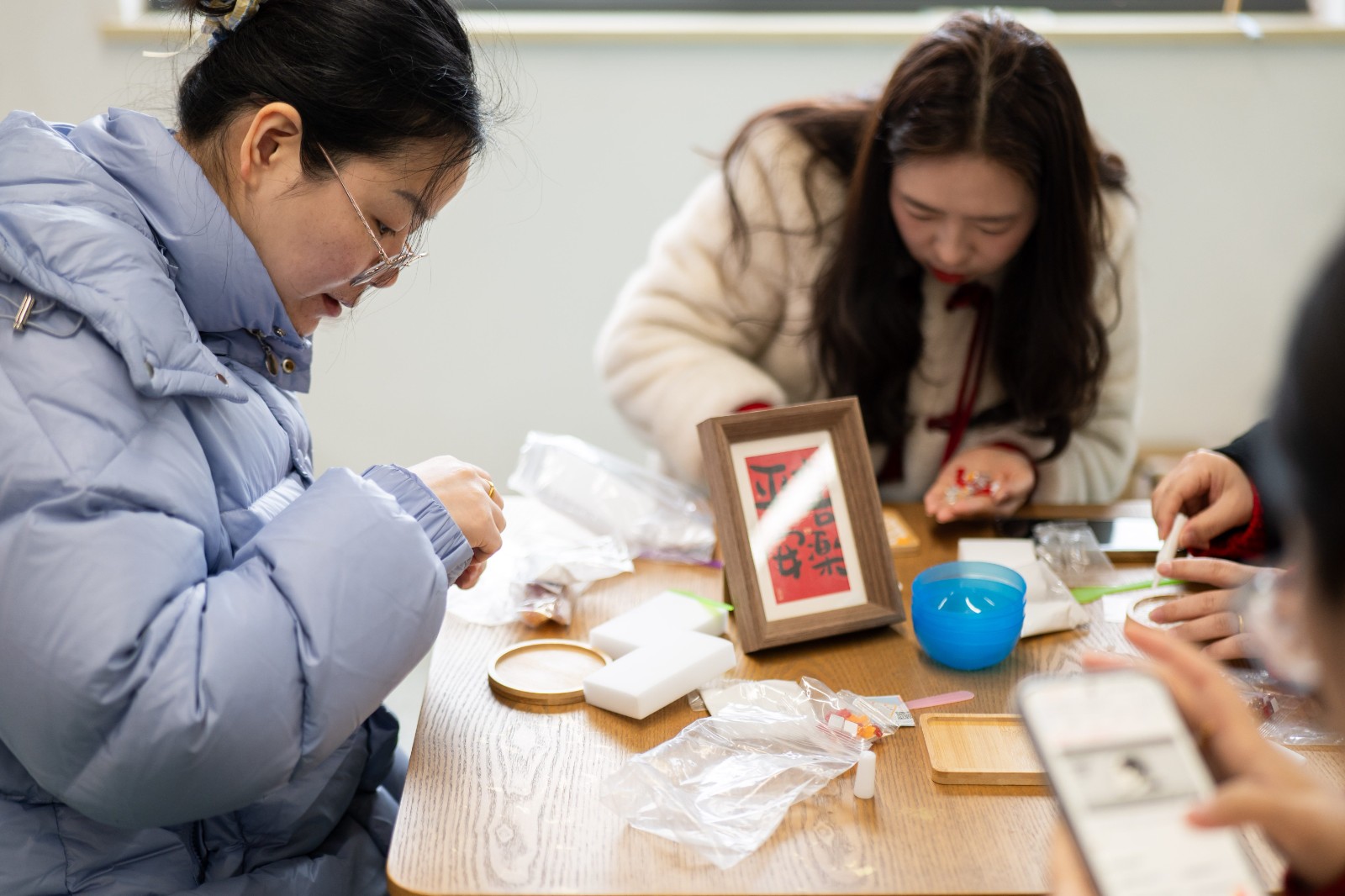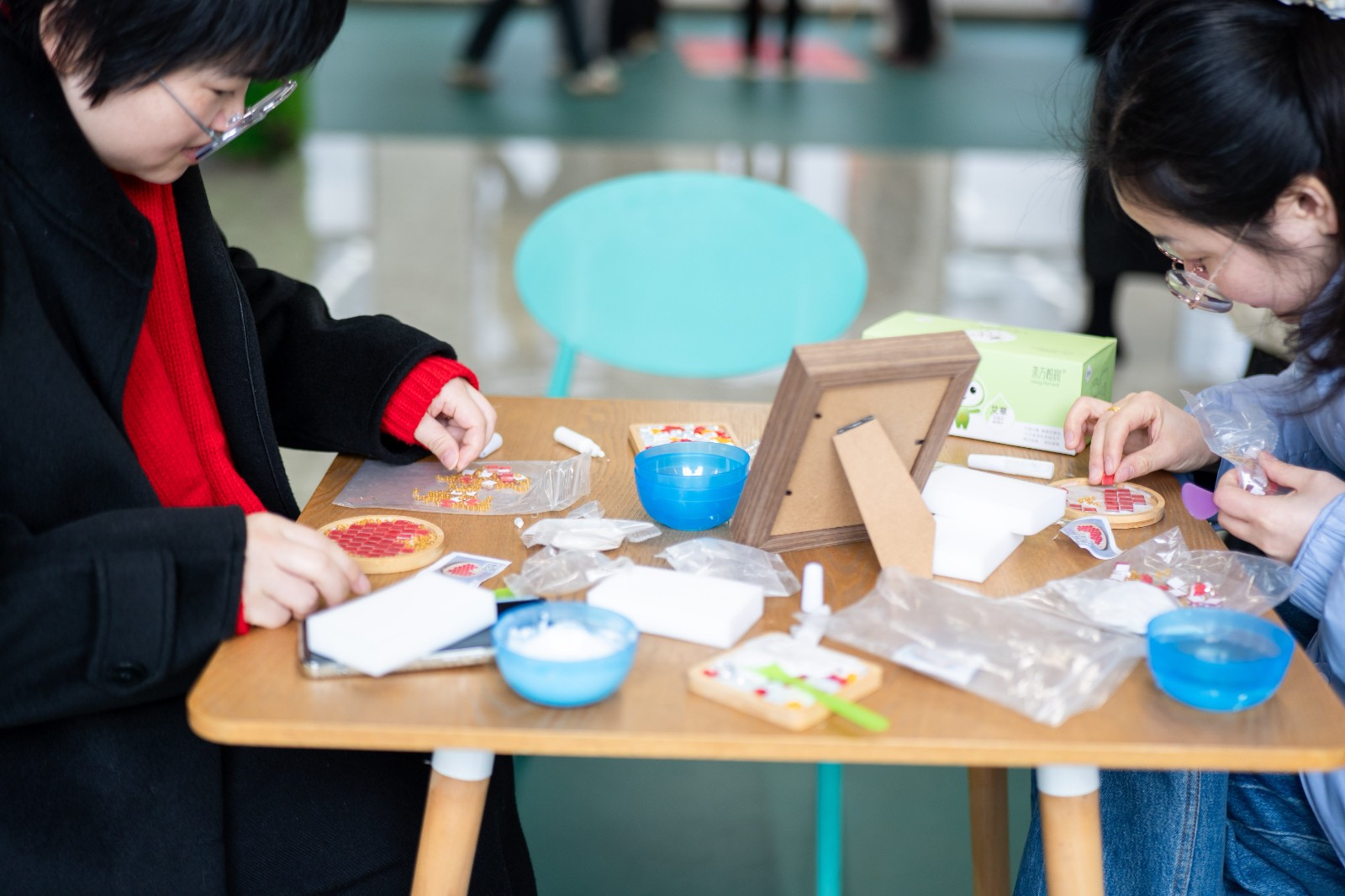 在福字杯墊DIY區(qū),大家紛紛化身手工達(dá)人,沉浸在創(chuàng)作的樂趣中。涂膠、粘貼、填縫……看似簡單的步驟,卻需要十足的耐心。10分鐘后,一個(gè)個(gè)精美的福字杯墊在手中成型。捧著自己親手完成的作品,小伙伴們的笑意里滿是藏不住的小小成就感。