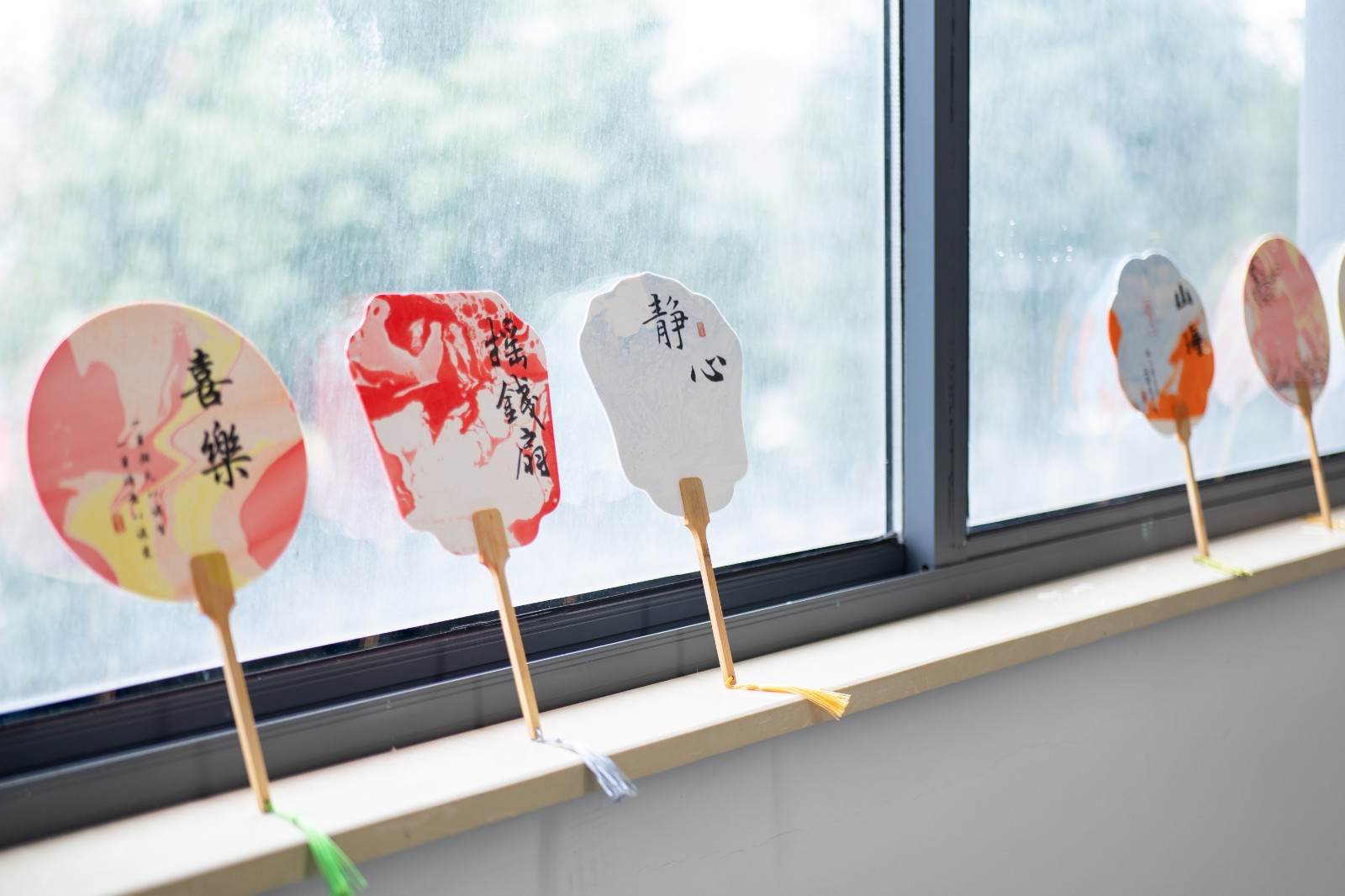 不遠(yuǎn)處的非遺漆扇制作區(qū)同樣熱鬧,大家執(zhí)扇輕描、細(xì)細(xì)暈染,在指尖的流轉(zhuǎn)間,為素白的扇面添上色彩與心意,巧手之下,一把把獨(dú)具韻味的漆扇徐徐成型。
