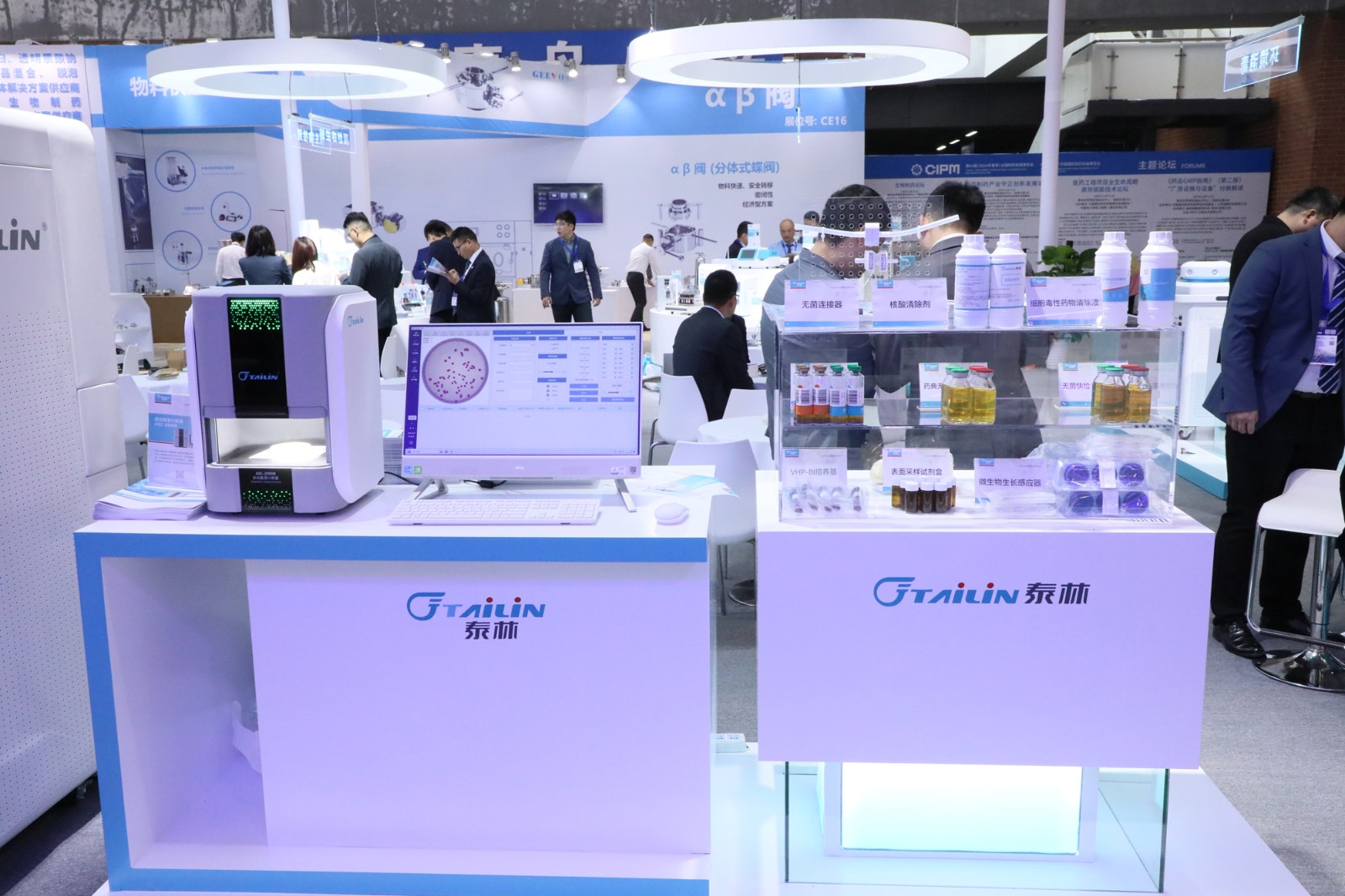 本次CIPM,泰林生物攜帶無菌藥品研發(fā)生產(chǎn)和質(zhì)量控制解決方案、數(shù)智化微生物實(shí)驗(yàn)室解決方案、微生物檢測(cè)解決方案、總有機(jī)碳(TOC)檢測(cè)解決方案等各具特色的解決方案亮相。同時(shí),還展出了全自動(dòng)無菌檢查培養(yǎng)系統(tǒng)、汽化過氧化氫消毒機(jī)、負(fù)壓隔離器、放射性藥品生產(chǎn)線熱室、總有機(jī)碳分析儀、NC轉(zhuǎn)印膜等自主研發(fā)產(chǎn)品,吸引了眾多嘉賓和行業(yè)專家駐足交流。