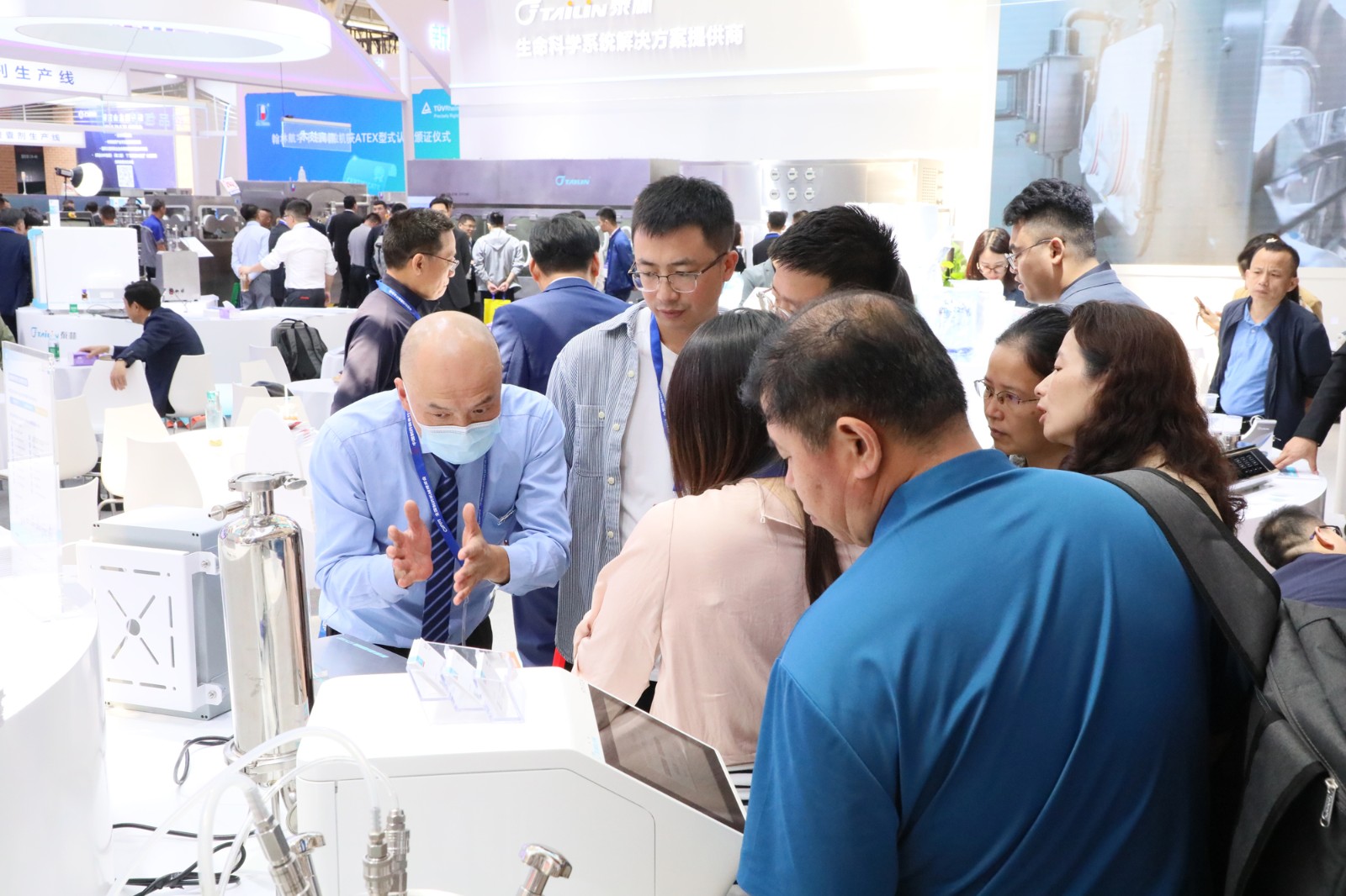 展會(huì)期間,絡(luò)繹不絕的觀眾聚集泰林生物展位,我們的工作人員全程提供專業(yè)的講解服務(wù),與現(xiàn)場(chǎng)各位專家學(xué)者、各企事業(yè)相關(guān)人員,多角度探討制藥裝備行業(yè)發(fā)展趨勢(shì)和最新的技術(shù)應(yīng)用,為制藥生產(chǎn)提供更加安全、高效和可靠的建設(shè)思路。