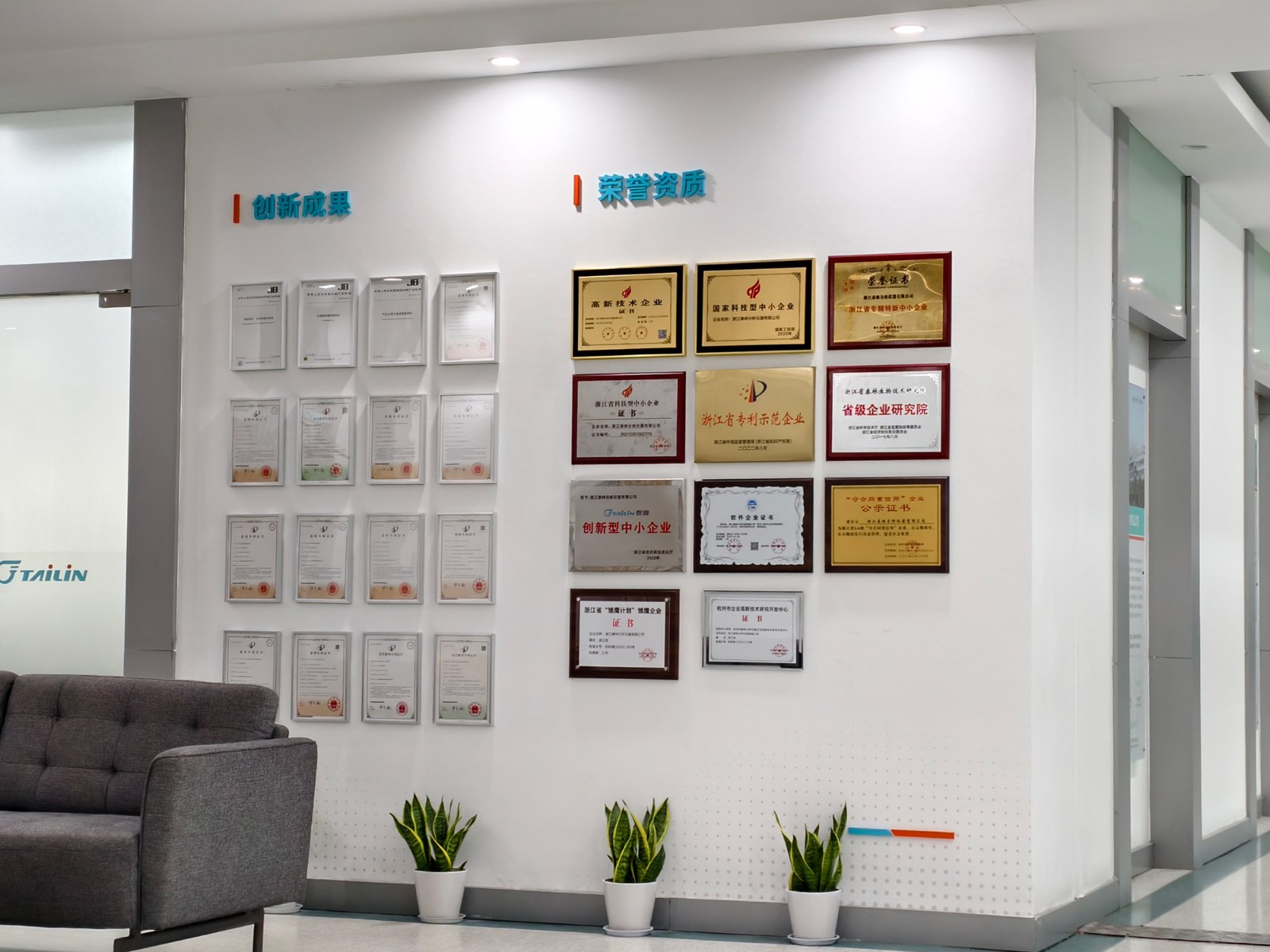 除此之外,分析儀器子公司內(nèi)部的裝潢也煥然一新。一樓大廳形象墻全面升級(jí),企業(yè)標(biāo)識(shí)醒目突出,空間視覺(jué)更顯敞亮開(kāi)闊,彰顯企業(yè)大氣風(fēng)范;移步二樓,參觀路線經(jīng)過(guò)精心優(yōu)化,新增榮譽(yù)墻與員工風(fēng)采展示板塊,將員工成就與企業(yè)輝煌交相輝映,彰顯團(tuán)隊(duì)凝聚力;沿途的形象燈箱設(shè)計(jì)更為簡(jiǎn)約明亮,照亮訪客探索之旅。